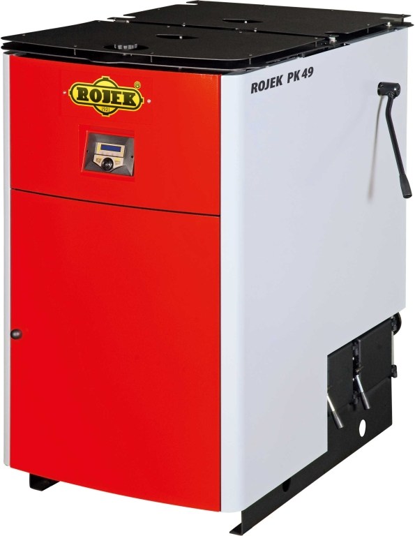 Pyrolytický kotel ROJEK PK 49 na ruční přikládání je určen ke spalování palivového dřeva - kusové dřevo o délce 530 mm, vlhkost paliva do 20 %, výhřevnost 14 - 18 MJ/kg, nebo hnědého uhlí Ořech 1 (20 - 40 mm), vlhkost paliva max. do 15 %, výhřevnost 14 - 20 MJ/kg. Kotel je certifikován ve Třídě 4 na palivo hnědé uhlí a palivo dřevo dle ČSN EN 303-5. Kotlové těleso je svařeno z jakostní oceli. Všechny plochy, které jsou ve styku se spalinami jsou z plechu tl. 5 mm. Ostatní plochy jsou z plechu tl. 4 mm.