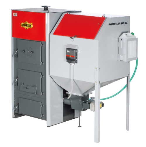 Automatický teplovodní kotel ROJEK TKA BIO 45 umožňuje automaticky spalovat dřevěné pelety o průměru 6 – 10 mm - kvalitní bílé, ale i s přídavkem kůry.