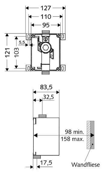 Podomítková sada na mechanické a elektronické splachování zvukotěsný podomítkový splachovač s vnitřním uzavíráním se záznamem ovládání a činnosti SCHELL pisoárů splachovací armatura podle DIN 12541
