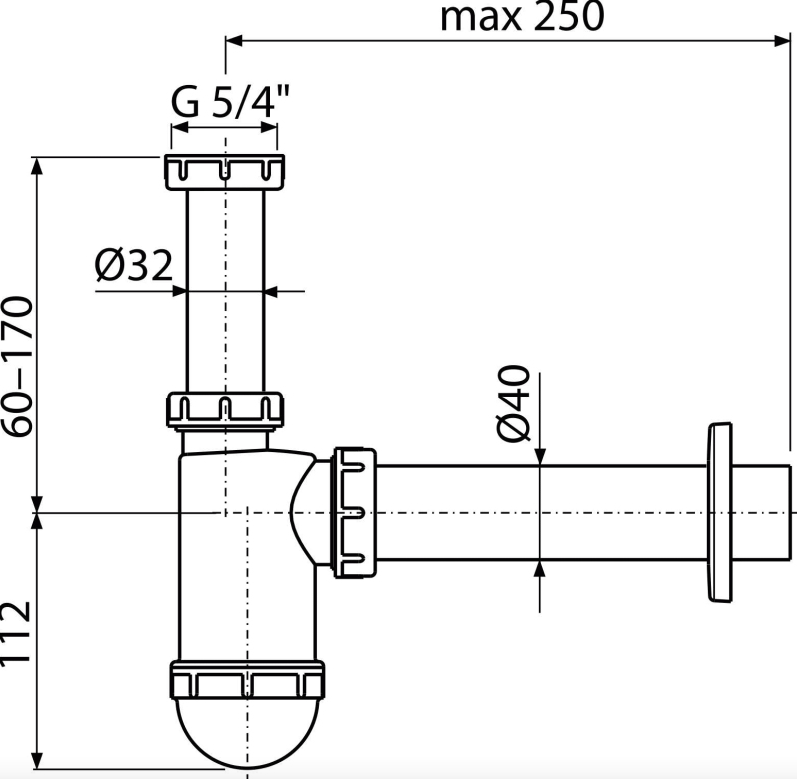 sifon umyvadlový ALCA PLAST d40 s převlečnou maticí 5/4" A43