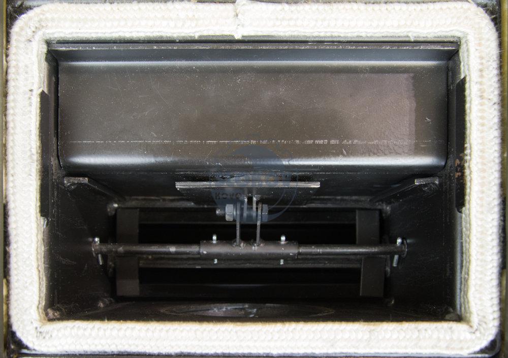 • Regulace sekundárního vzduchu přiváděného do spalovací komory zvyšuje účinnost kotle. Primární vzduch je přiváděn pod rošt regulovatelnou klapkou v popelníkových dvířkách. Regulace se provádí ručně nebo automatickým regulátorem výkonu (TRV), který je dodáván jako příslušenství současně s kotlem. Vstup a výstup topné vody je standartně opatřen přírubami G2″, je možno si ale objednat i kotel s přírubami G 1 1/2″ nebo DN 65. Kouřovod je v ose kotle na zadní straně.