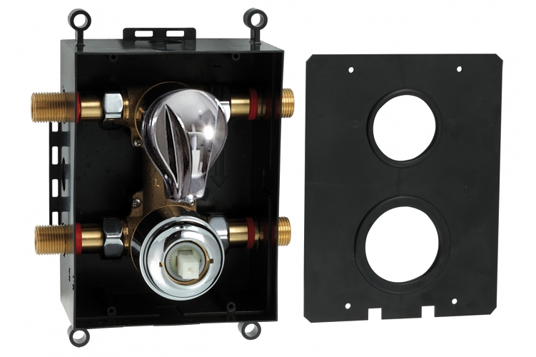 Podomítkový montážní box s vodovodní baterií s přepínačem určený k pohodlnému zabudování do zdi nebo sádrokartonu. Možnost volby výběru ze 4 designových krytů a ovládacích pák (Metalia 55, 56, 57 a Titania LUX).