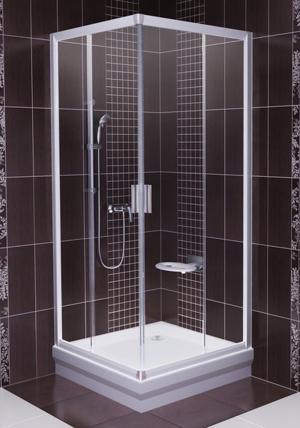 Sprchový kout rohový posuvný čtyřdílný v moderním provedení.