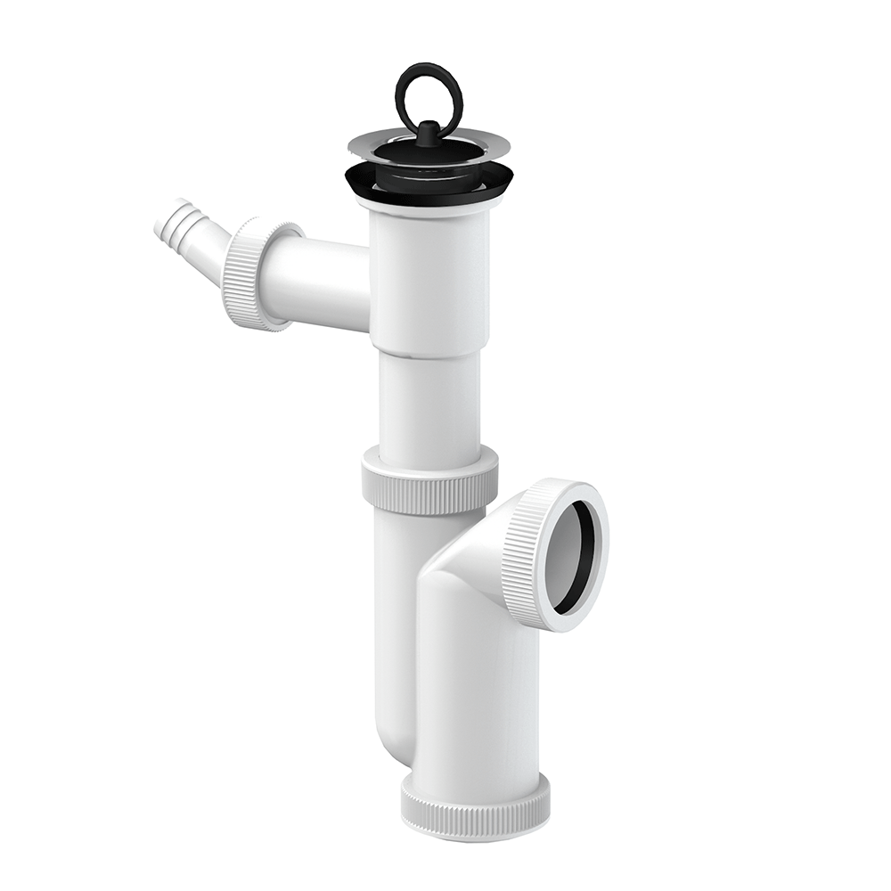 Sifon dřezový T-707 DN50/DN40 s odbočkou pro připojení pračky nebo myčky od slovenského výrobce SAM holding je vybaven mřížkou z nerezi. Materiál plast, průtok 0,9 l/s, teplotní odolnost do 95 °C.