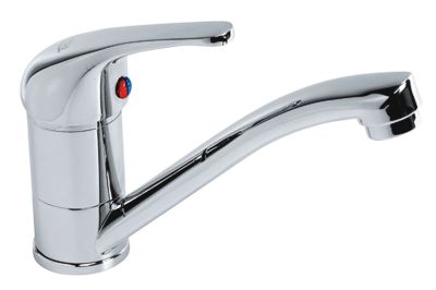 Stojánková dřezová baterie. Délka výtokového ramínka 150 mm.