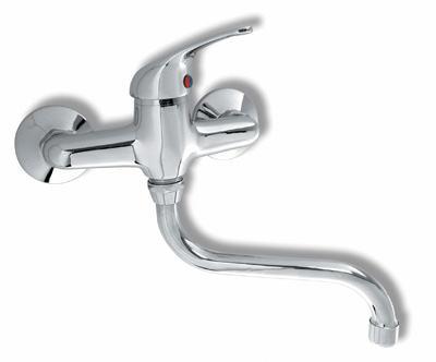 nástěnná baterie s trubkovým ramenem, délka výtokového ramínka 220 mm.