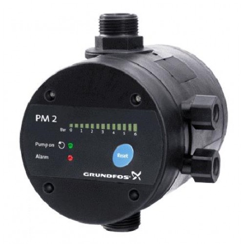 Tlaková řídicí jednotka Grundfos PM 2 -Aje určena pro automatické zapínání/vypínání čerpadel Grundfos a dalších čerpadel pro dodávku vody. Jednotka PM 2 -A zajišťuje zapínání čerpadla při nastavitelném zapínacím tlaku 1,5 - 5 barbar. To umožňuje přizpůsobení různým typům instalace a požadované úrovně komfortu.