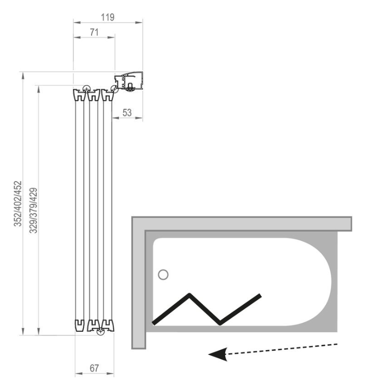 Zástěna se skládá ze tří pohyblivých dílů, které lze zcela složit do vnitřního prostoru nad vanu. Vanovou zástěnu lze instalovat na vanu BeHappy a k obdélníkovým vanám s rovným horním lemem (Praktik Lux, Praktik N, Classic, Sonata, Campanula II, Vanda II a Lilia) nebo na jakoukoli klasickou obdélníkovou vanu s rovným horním lemem. Standardní výška zástěny je 1400 mm.