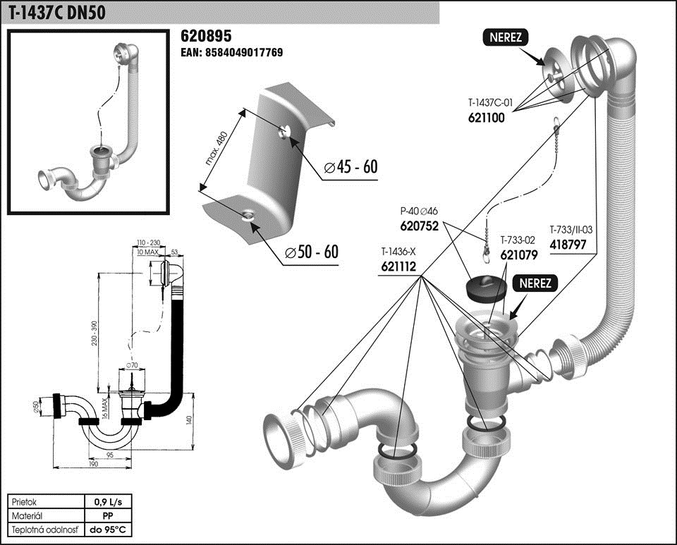 Vanový sifon T 1437C chrom s přepadem