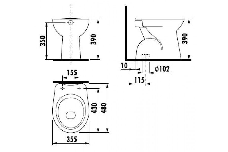 WC mísa ZETA se svislým odpadem a s hl. splachováním