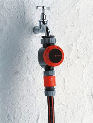 Zavlažovací hodiny od společnosti GARDENA jsou připojeny k vodovodnímu kohoutku a automaticky vypínají zavlažování vaší zahrady, např. pomocí zavlažovačů nebo systémů s kapači, jako je Micro-Drip-System. Časy zavlažování lze programovat v rozmezí pěti až 120 minut. Zavlažovací hodiny spouští okamžitě a automaticky vypínají proudění vody po uplynutí naprogramovaného času. Pro náhodné zavlažování lze také nastavit na trvalý průtok vody. Pro provoz není vyžadována baterie.